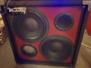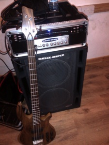 My current set up for live shows is the Genz Benz streamliner 900watt amplifier and a couple of fabulous Vanderkley cabs (2×10 and 1×15). This light in weight combination is certainly a load more powerful than the ridiculous stuff we used to carry around years ago, as you can see in this picture when I was playing with Prime Cut in the very early 80’s. The crazy combination of a Marshall Head along with 2 of 4×12’s and EV Eliminator Bass Bin. I think I also had bass pedals at that point and Colin who you met earlier had to rig it all!)